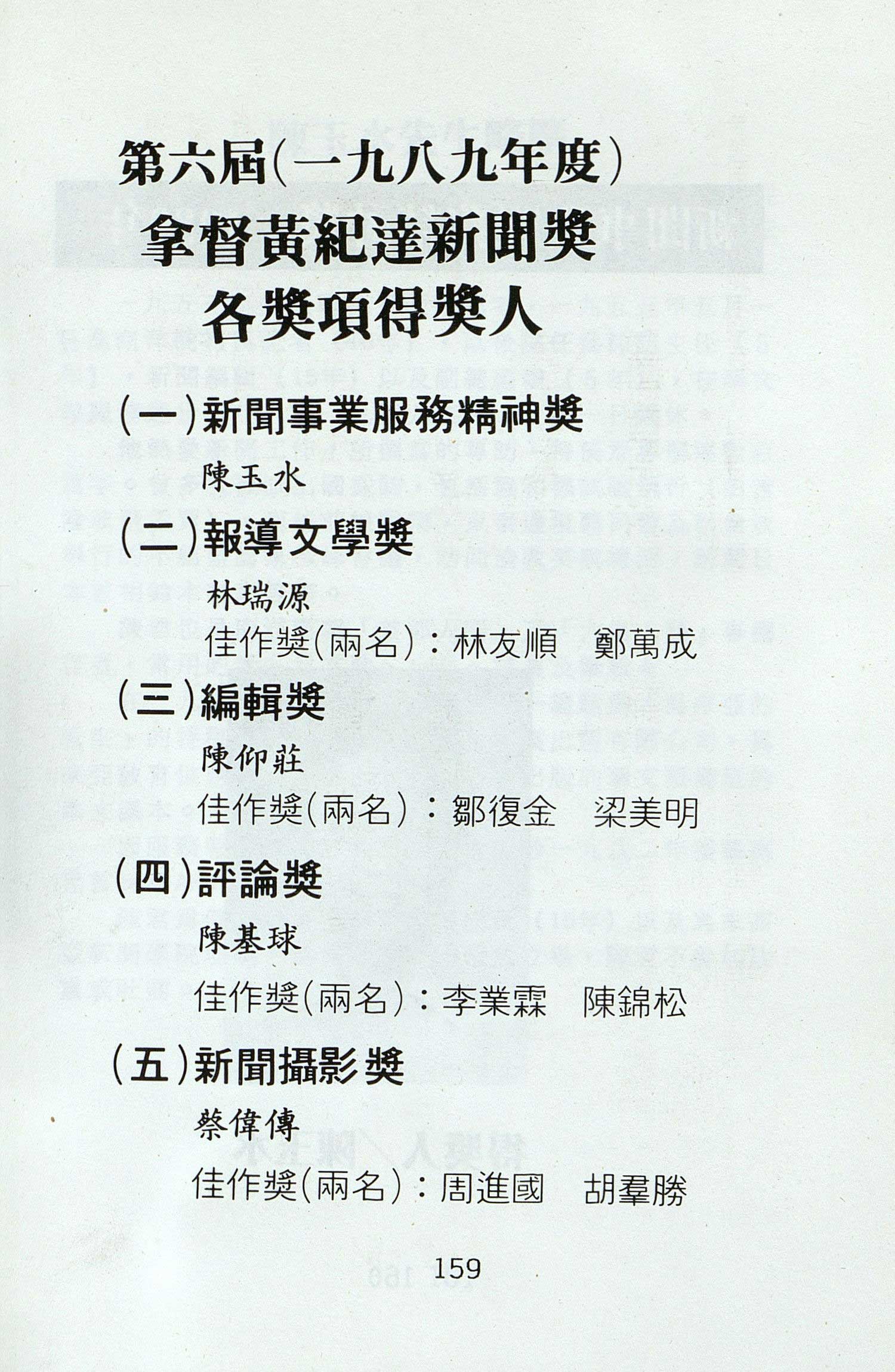 1989年度黄纪达新闻奖得奖名单