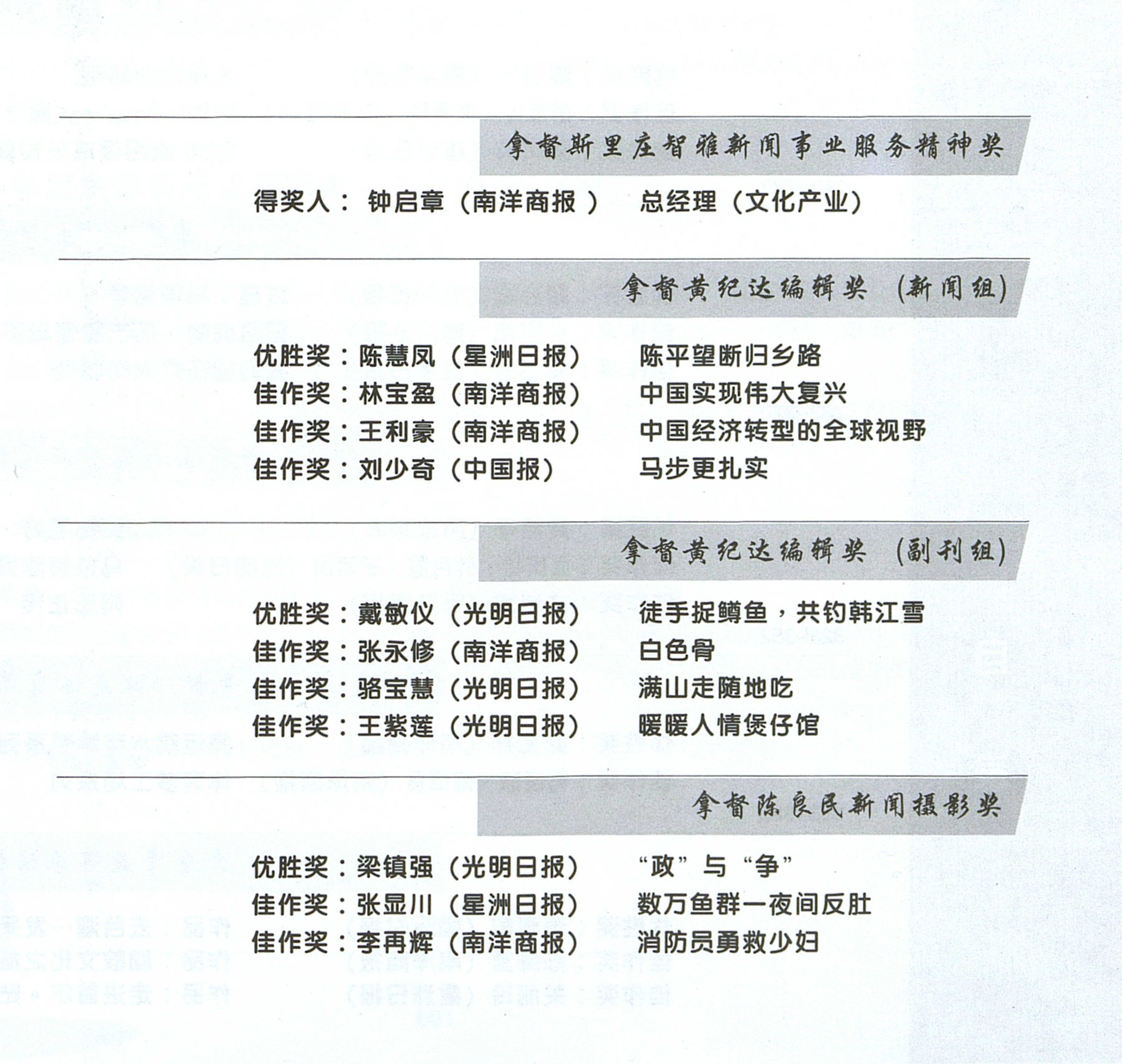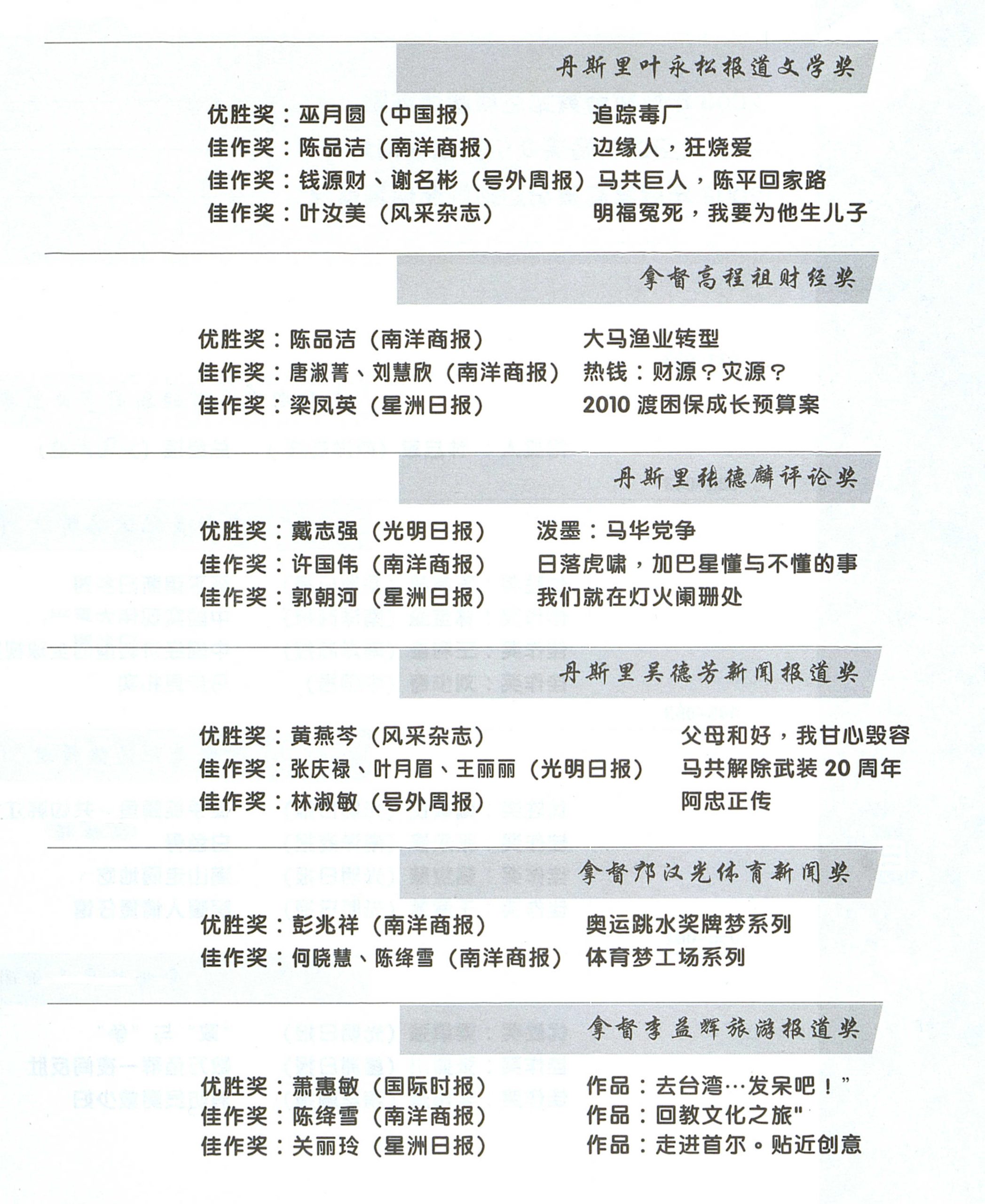 2009年度黄纪达新闻奖得奖名单