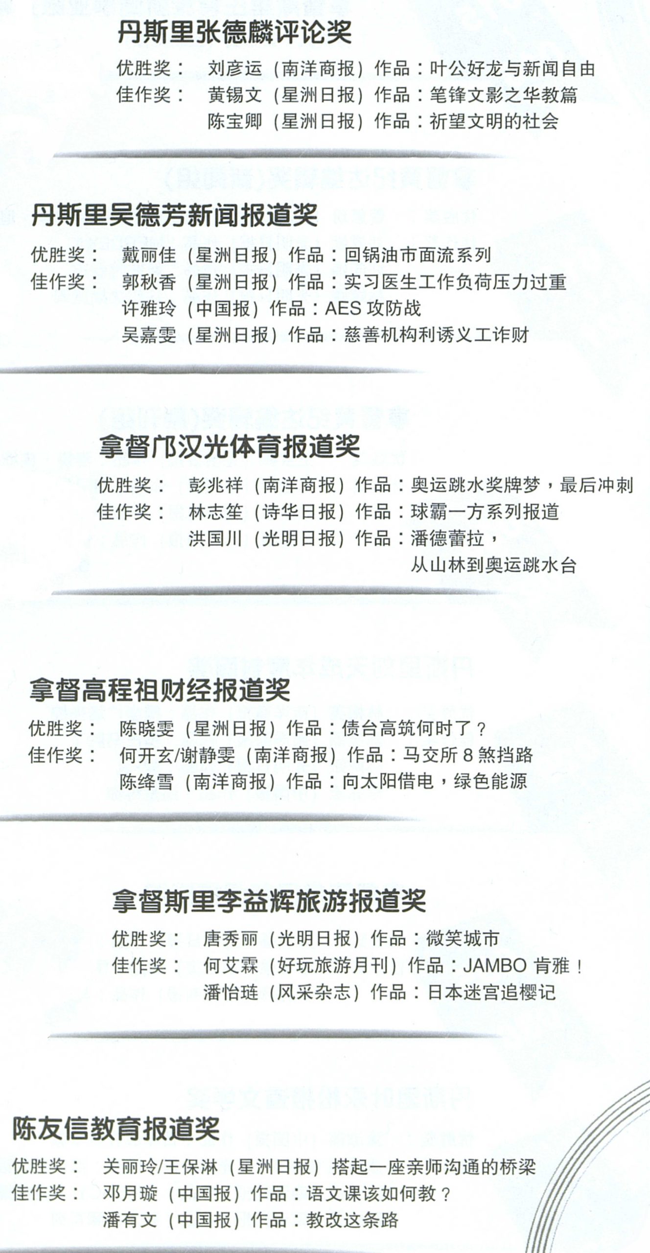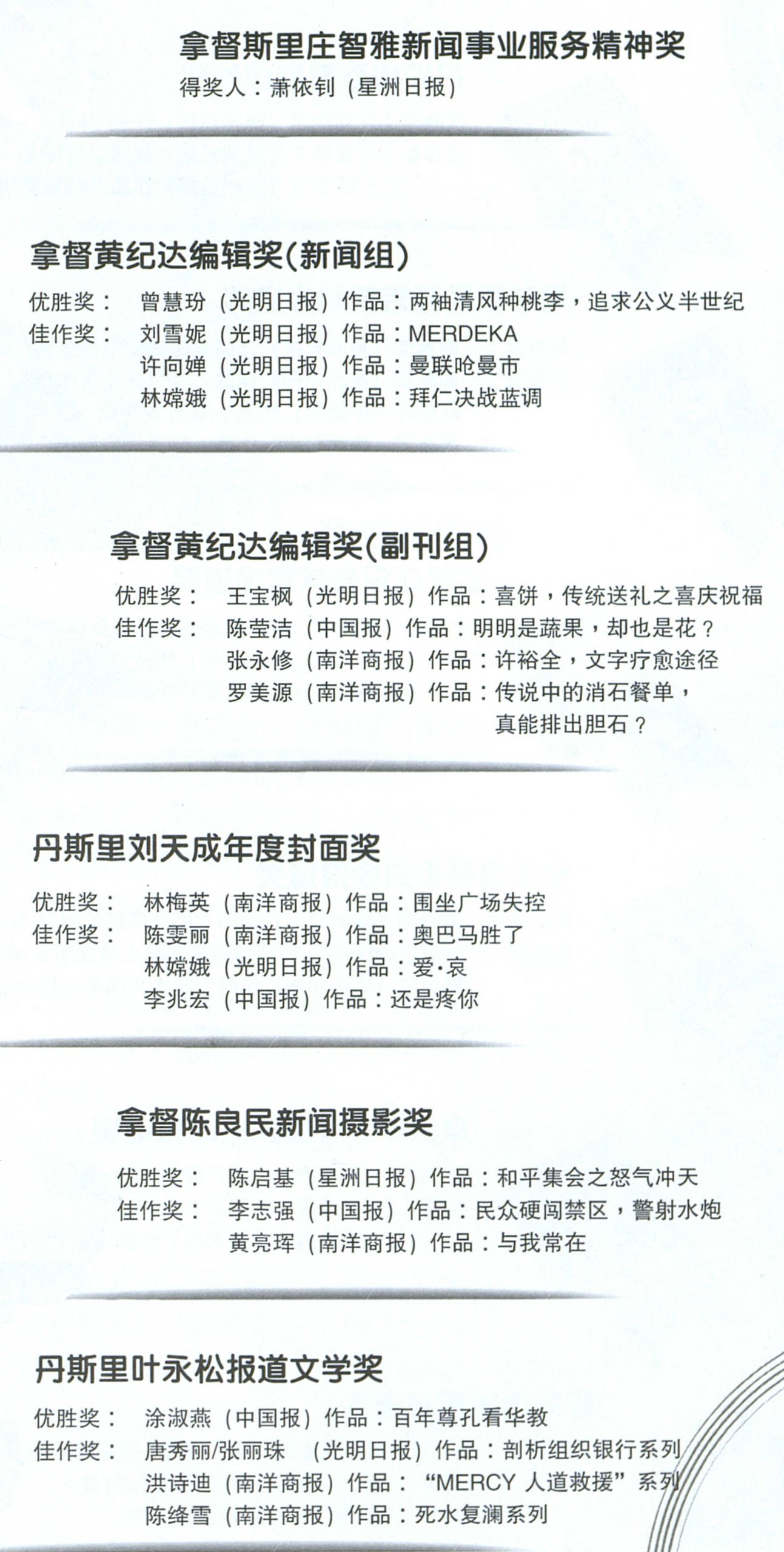 2012年度黄纪达新闻奖得奖名单
